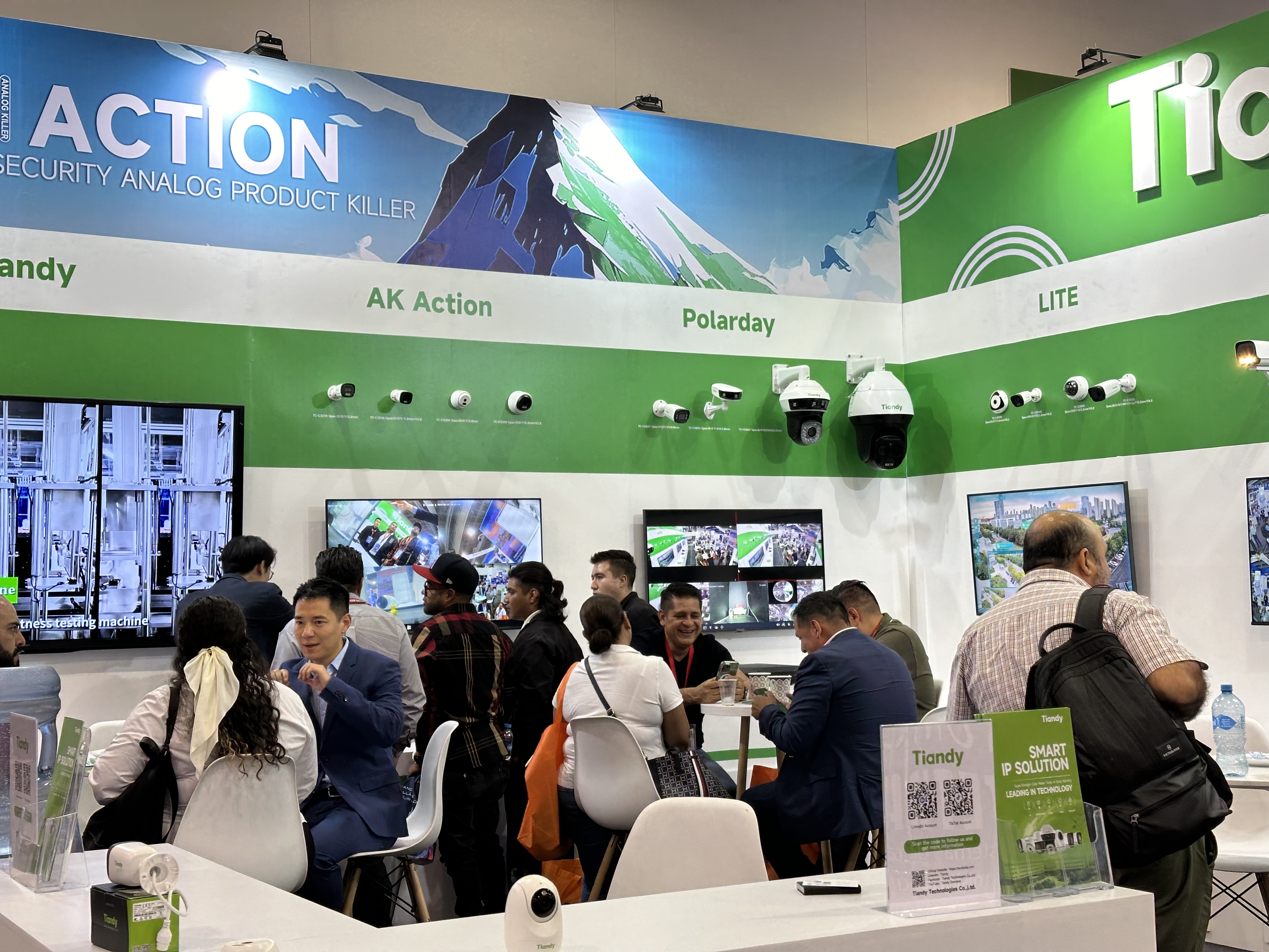 在本次展会上,天地伟业着重展示了多款备受瞩目的新品,其中包括AK产品系列,涵盖了AK1.0及2.0设备,并展示了AK防水功能的创新设计。此外,Polar Day家族的系列产品也在展台上展出,来自天地伟业OBG业务群的同事们为在场的观展人士带来了专业、精彩的产品讲解。除此之外,Tiandy还展示了Lite/Pro以及民品Wi-Fi系列产品,为现场观众带来了更多选择和体验。