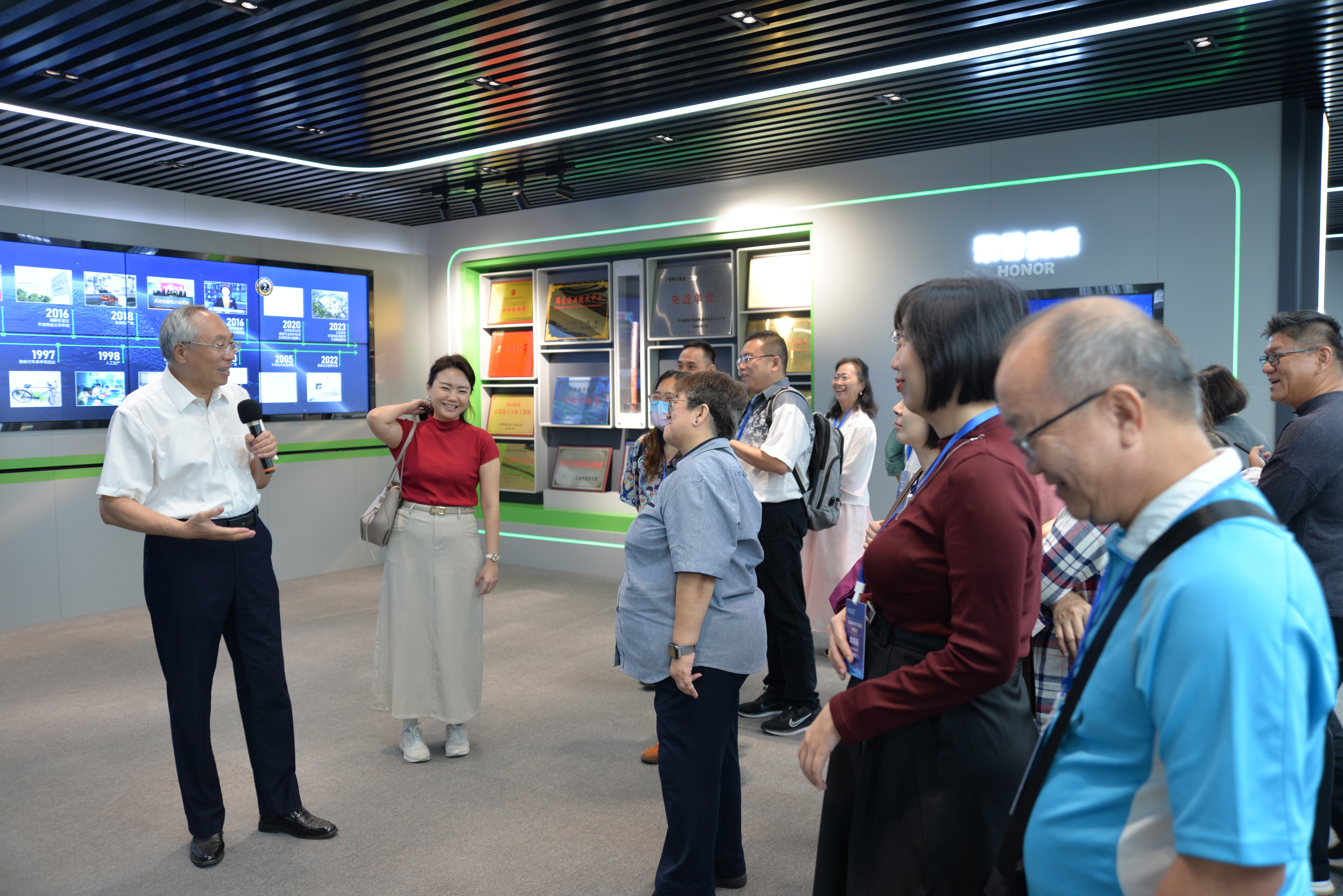 在智能安防展厅,戴林董事长为研修团亲切地讲述了公司发展历程、人才建设、行业深耕和发展战略、现代化生产线和精工制造、智慧校园建设和服务等方面。研修团对公司的人才培养机制表示赞扬,并肯定了天地伟业为推动教育行业数字化发展做出的科技贡献。随后,研修团参观了天地伟业国家级图像效果分析实验室和OBG办公大厅,切身感受了公司雄厚的科研实力和海外市场的发展情况。